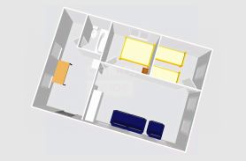 Общая площадь дома 54,7 кв. метров. 2 спальни по 7,5м, гостинная 21м и кухня 15м. В доме электричество, вода, газ, косметический ремонт. Санузел также расположен в доме.