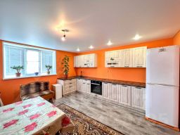 Дом построен в 2021 году из шлакоблоков с утеплителем. На первом этаже выровнены и окрашены стены, натяжные потолки, теплый пол. Мансардный этаж - черновая отделка.