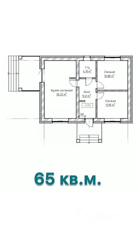 Арт. 129015461 Предлагаем вам функциональную планировку 65 кв.м, где вас ждут две уютные спальни и широкая кухня-гостиная! Просто обустраивайтесь — поклейте обои и заезжайте!