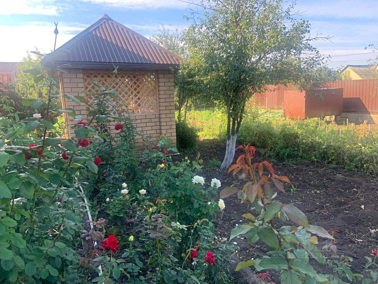Участок ухоженный, имеются многолетние насаждения: деревья, виноград, цветы. Новая беседка.