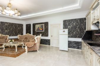 Рядом находится роскошный готовый гостевой дом, оборудованный современным евроремонтом, качественной мебелью и бытовой техникой. Крыша выполнена из мягких кровельных материалов, обеспечивающих полную тишину даже в дождь. Дополнительно обустроены двойные утеплители, создающие комфорт круглый год.