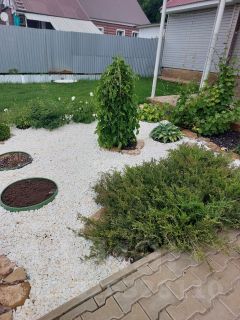 -Место под террасу, зону барбекю, зону зеленых насаждений, дополнительное место перед домом для парковки. Есть свой сад: яблони, груша, черноплодная рябина, малина, жимолость, шелковица, клубника, хвойные деревья, розы и газон.