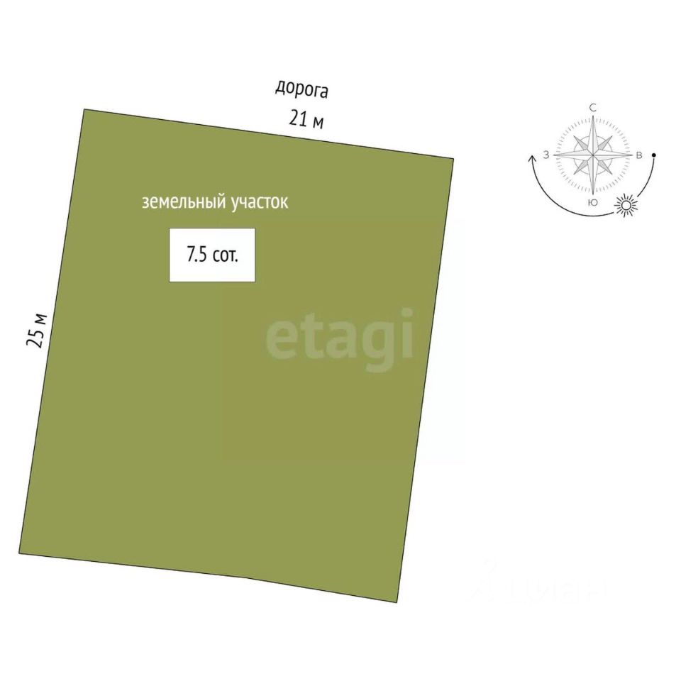 - Участок правильной формы площадью 7,5 соток.