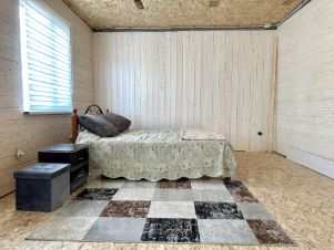Планировка внутри дома: Входная группа, санузел, котельная, кухня/ гостиная и большая комната для отдыха с двумя окнами , которую при необходимости можно разделить на 2 спальни.