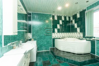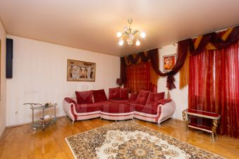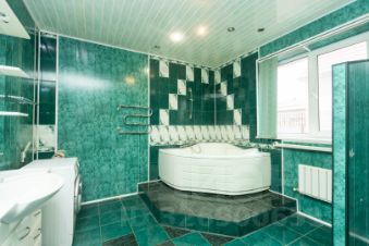 Просторная гостинная, кабинет и большой санузел с джакузи и окном.