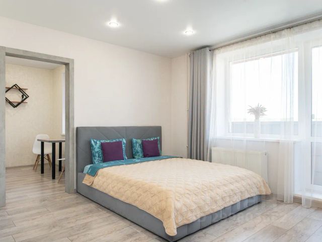 Сдаётся уютная квартира. Однокомнатная светлая квартира со свежим ремонтом, мебелью, техникой. В комнате двуспальная кровать. Установлен большой ЖК-телевизор. Имеется вместительный шкаф. Кухня оснащена необходимой для проживания мебелью и бытовой техникой, укомплектована посудой и кухонной утварью по числу персон. В ванной имеется стиральная машина-автомат, а также принадлежности для личного ухода Что находится рядом: ТЦ Метро, ТЦ Тройка, банкетный зал "Эстель", ресторан "Версаль", ресторан "До Зари". В 5 минутах езды парк отдыха "Притяжение". В 20 минутах езды аэропорт. Фото и информация соответствуют. Есть залог.
