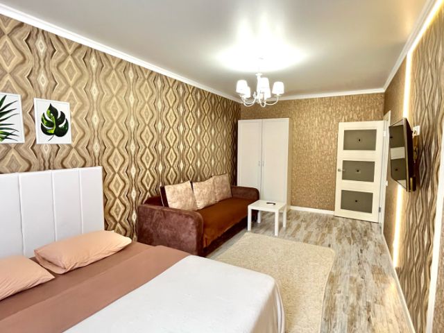 Чистая, уютная 1-комнатная квартира с очень удобным расположением в новом престижном районе города. Всегда есть парковочные места для автомобиля. В квартире имеется все необходимое для проживания: кровать, диван, журнальный стол, телевизор, холодильник, стиральная машина, wi-fi, кабельное тв, чистое постельное белье и полотенца, утюг и гладильная доска. Есть посуда для приготовления и принятия пищи. В пешей доступности ТЦ КИТ, Аквапарк, продуктовые магазины Магнит и Пятерочка, супермаркет Окей, кафе и рестораны, остановка общественного транспорта.