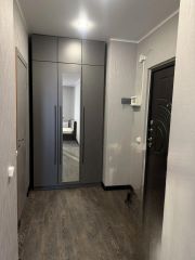 Уютная 1-комнатная квартира в новом доме с очень хорошим ремонтом. В квартире есть мебель: новый кухонный гарнитур, кухонный стол, стиральная машина, холодильник, вешалка с тумбой в коридоре, диван. Сдается на длительный срок без животных. Окна выходят во двор. Большая детская площадка. Большая парковка для автомобилей. В шаговой доступности магазин лента, рынок и другие магазины. Остановки рядом.